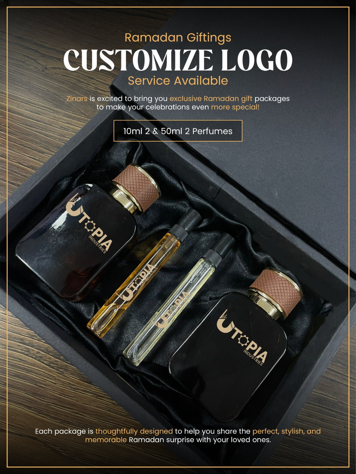 Create unforgettable Eid and Ramadan moments with our luxury perfume sets, perfect for corporate gifting, complete with customized logos for a truly personal touch.